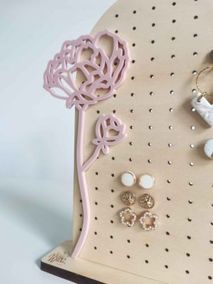 In our signature Arch shape, a stunning acrylic Peony flower on it with 2 different colour options to pick from. Either a beautiful blush pink or a stubble sage green